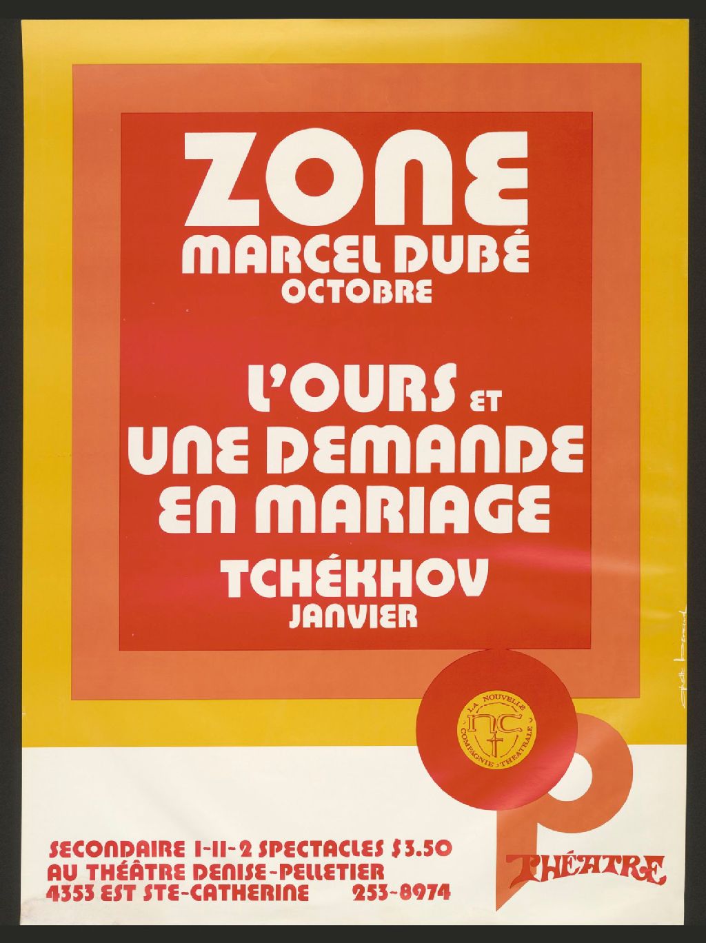 Zone, Marcel Dubé, octobre, L'ours et une demande en mariage, Tchékhov, janvier ...