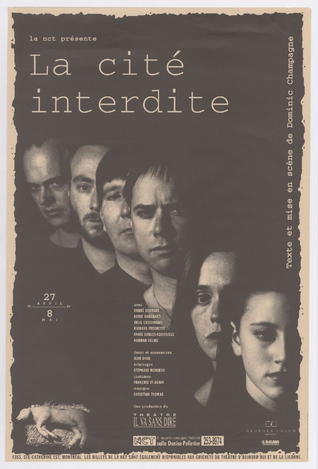 La nct présente, La cité interdite, texte et mise en scène de Dominic Champagne avec André Barnard, Denis Bouchard, Julie Castonguay ...