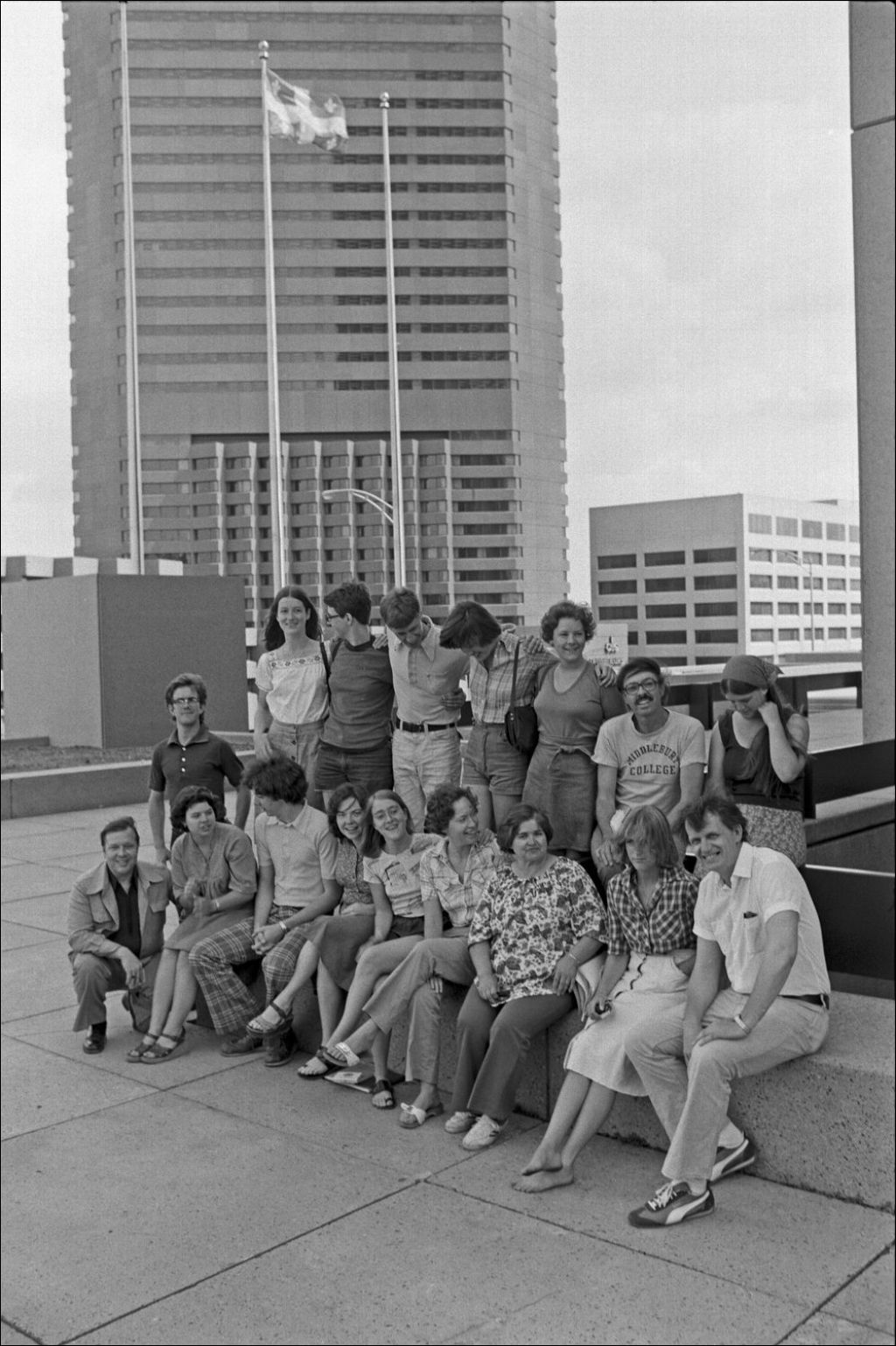 Groupe de Boston en visite au ministère de l'Éducation, église Notre-Dame des Victoires et chapelle de l'hôpital général à Québec, 1977-06-02, Archives nationales à Québec, Fonds Ministère des Communications, (03Q,E10,S44,SS1,D77-385), Claude Gaboury.