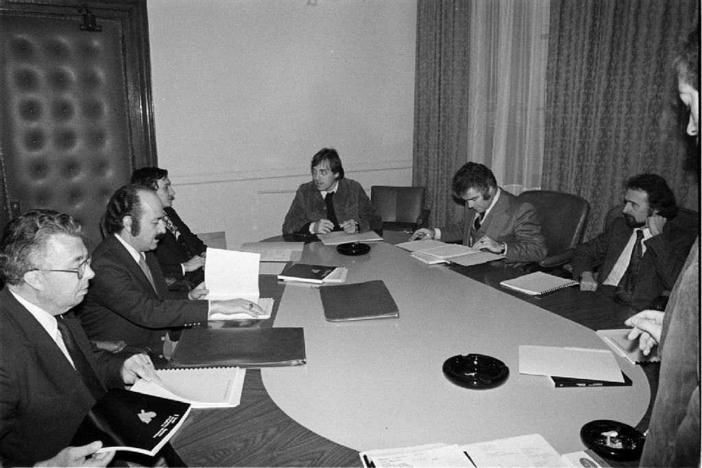 Georges Beaupré au bureau du ministre Jacques Parizeau pour le rapport du livre vert des graphistes et visite du Complexe scientifique