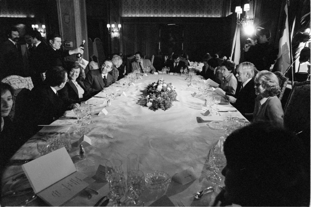Visite du premier ministre italien Guilio Andréotti au premier ministre René Lévesque, 1977-11-19, Archives nationales à Québec, Fonds Ministère des Communications, (03Q,E10,S44,SS1,D77-752), Bernard Vallée.