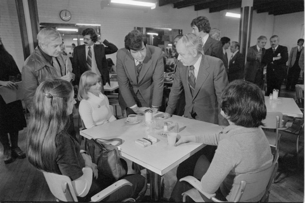 Visites du premier ministre René Lévesque ; rencontre avec le député Richard Guay des employés de la manufacture Daisy Fresh