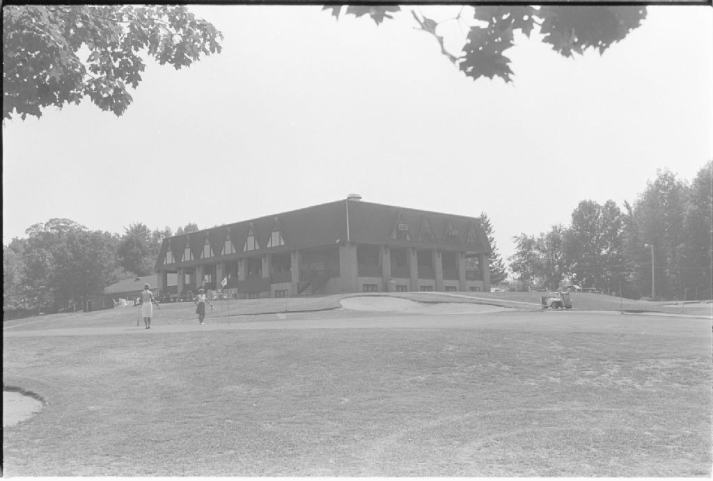 Reportage en Mauricie ; golf à Drummondville et intérieur et extérieur du théâtre d'été de Georges d'Or Les Ancêtres à Saint-Germain de Grantham, 1978-08, Archives nationales à Québec, Fonds Ministère des Communications, (03Q,E10,S44,SS1,D78-630), Claude Gaboury.