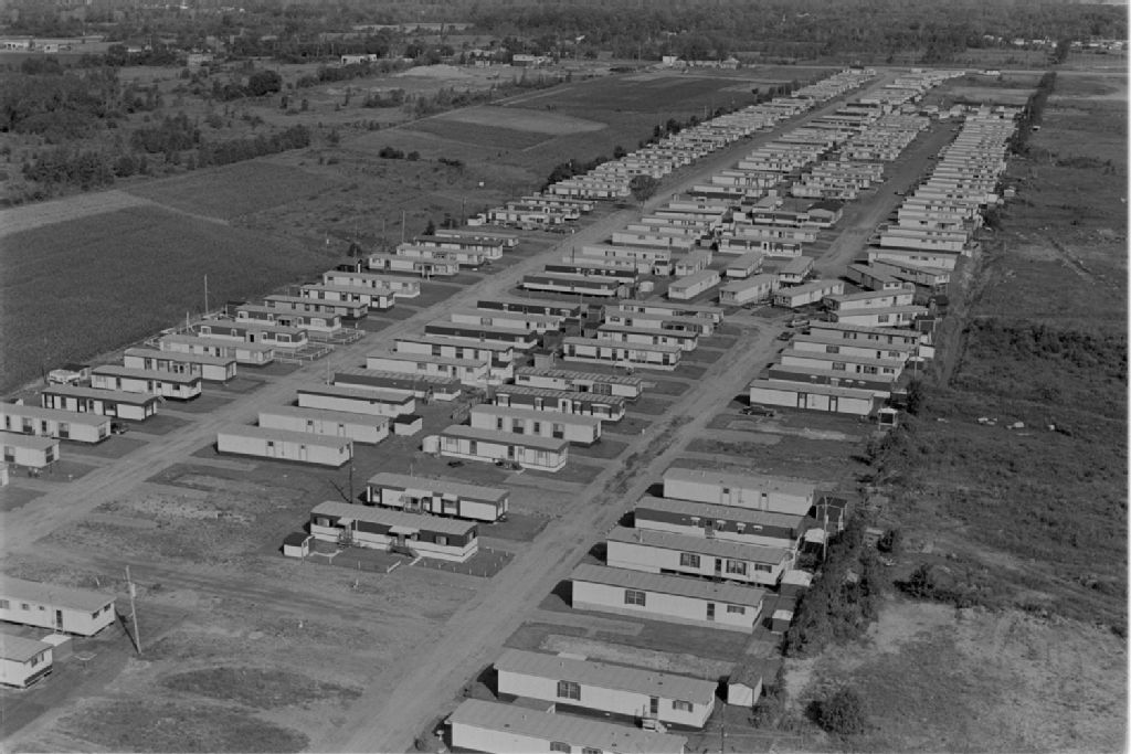 - Vues aériennes d'un parc de maisons mobiles à Laval ouest et d'un rang au nord-ouest de Mirabel et Ludger Pearson, pilote de l'hélicoptère du ministère des Transports