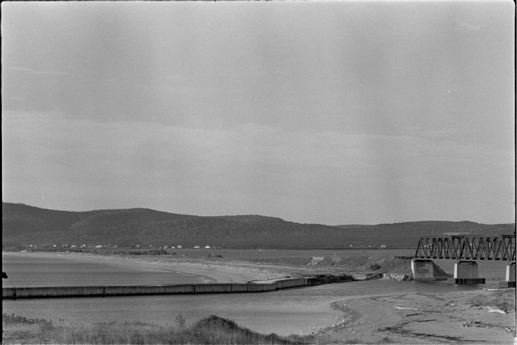 - Reportage en Gaspésie ; chemin de fer à Barachois, vues de Percé, Douglastown et Gaspé, complexe des Pêcheurs unis, route de la Gaspésie et bateaux de pêche et quai de Rivière-au-Renard