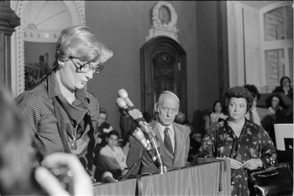 Lancement du livre vert sur le Conseil du statut de la femme avec le premier ministre René Lévesque, 1978-10-23, Archives nationales à Québec, Fonds Ministère des Communications, (03Q,E10,S44,SS1,D78-826), Bernard Vallée.