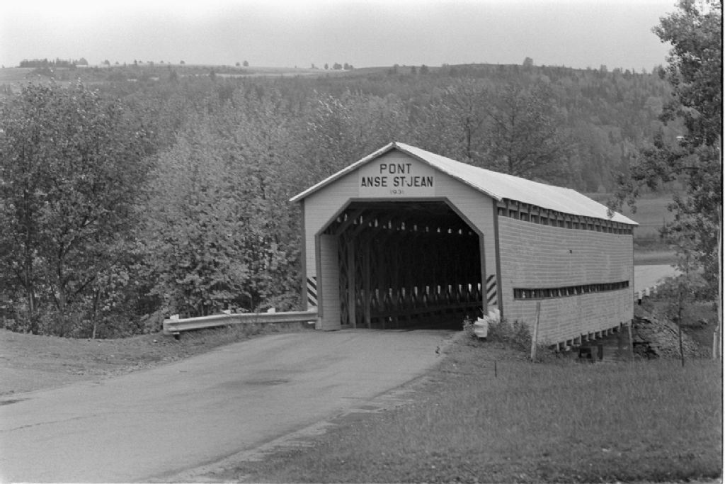 Reportage en Gaspésie ; ponts couverts de l'Anse Saint-Jean et de Routhierville, gares du Canadien National à Amqui, Saint-Alexis et Matapédia, scierie près du lac aux Saumons et vues d'Amqui, Causapscal et Matapédia, 1978-09-25, Archives nationales à Québec, Fonds Ministère des Communications, (03Q,E10,S44,SS1,D78-838), Marc Lajoie.