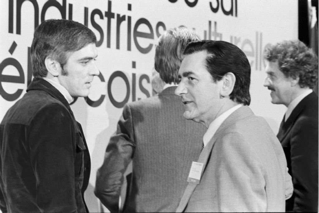 Conférence sur les industries culturelles québécoises ; les ministres Denis Vaugeois et Camille Laurin et forum sur la dimension industrielle de la culture avec le président de la Société de développement industriel du Québec Jean Labonté, le délégué général du Québec à New York Marcel Bergeron et Benoît Lacroix, professeur à l'université de Montréal