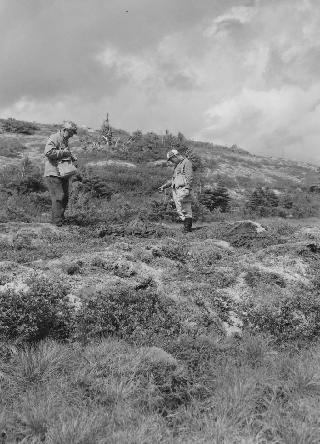 Végétation sur un flanc de montagne, M.Jacques Rousseau et son fils, Ungava, Mont Otish