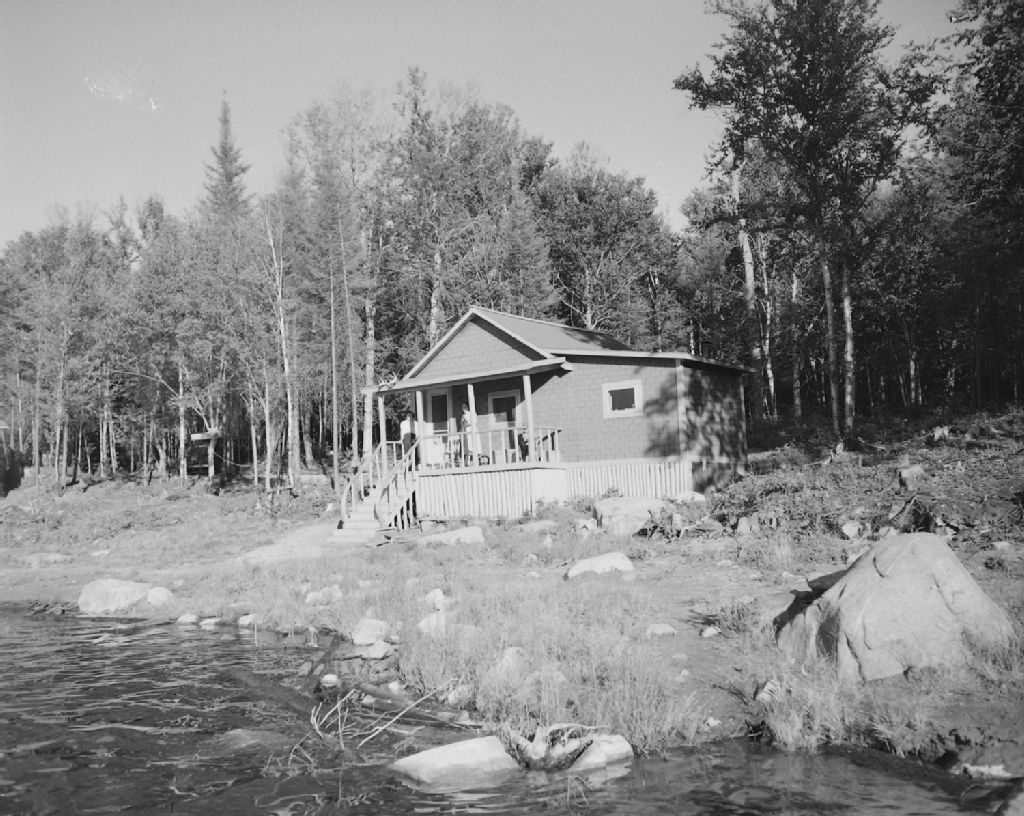 Camp de pêche du ministère de la Chasse et de la Pêche dans le Parc de la Vérendrye, 1949, Archives nationales à Québec, Fonds Ministère de la Culture et des Communications, (03Q,E6,S7,SS1,D2,P71620), Gustave Bédard.