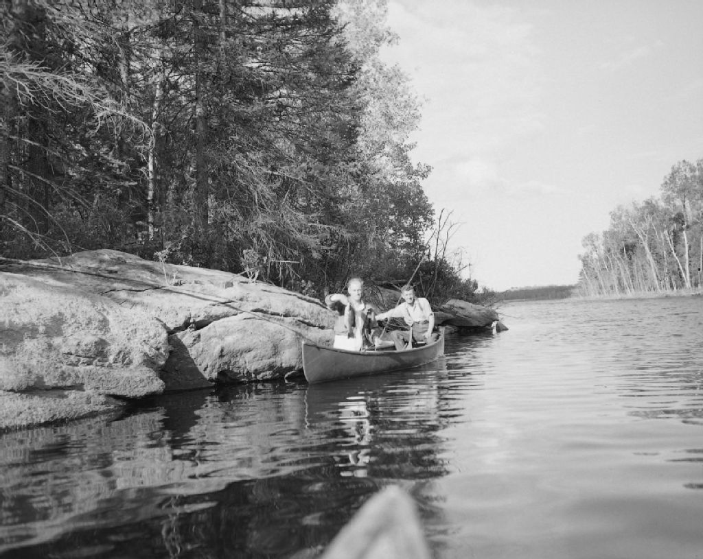 Pêche à l'achigan sur la rivière Ignace, 1949, Archives nationales à Québec, Fonds Ministère de la Culture et des Communications, (03Q,E6,S7,SS1,D2,P71633), Gustave Bédard.