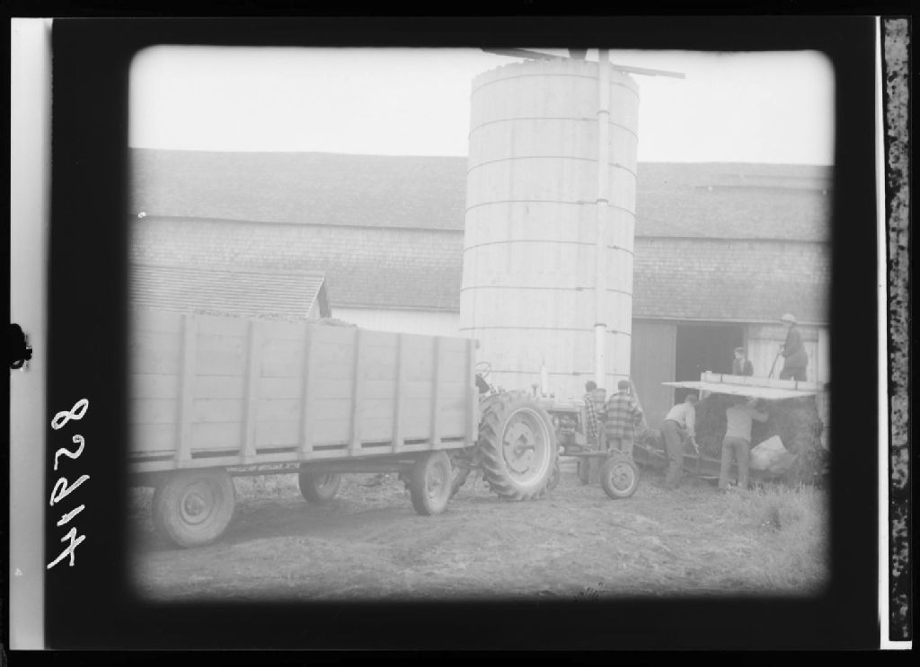 [Travailleurs de la ferme entreposant du foin]