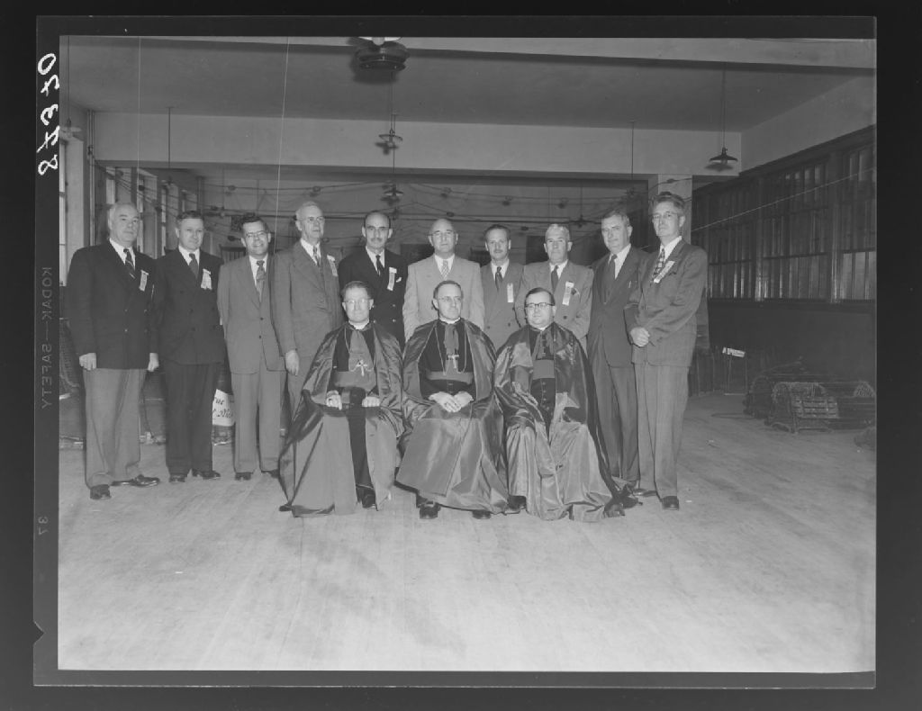 Les officiels au banquet de clôture du IV congrès de l'ACELF, université Saint-Joseph, Nouveau-Brunswick, 1951, Archives nationales à Québec, Fonds Ministère de la Culture et des Communications, (03Q,E6,S7,SS1,D2,P87370), Flett's Studio, Moncton, N.-B.