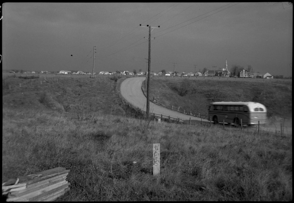 Ponceau Morin cours d'eau des Aulnes, route Ruisseau des Aulnes. Saint-Justin paroisse, comté Maskinongé., 1951, Archives nationales à Québec, Fonds Ministère de la Culture et des Communications, (03Q,E6,S7,SS1,D2,P90047), Marcel Gagnon.