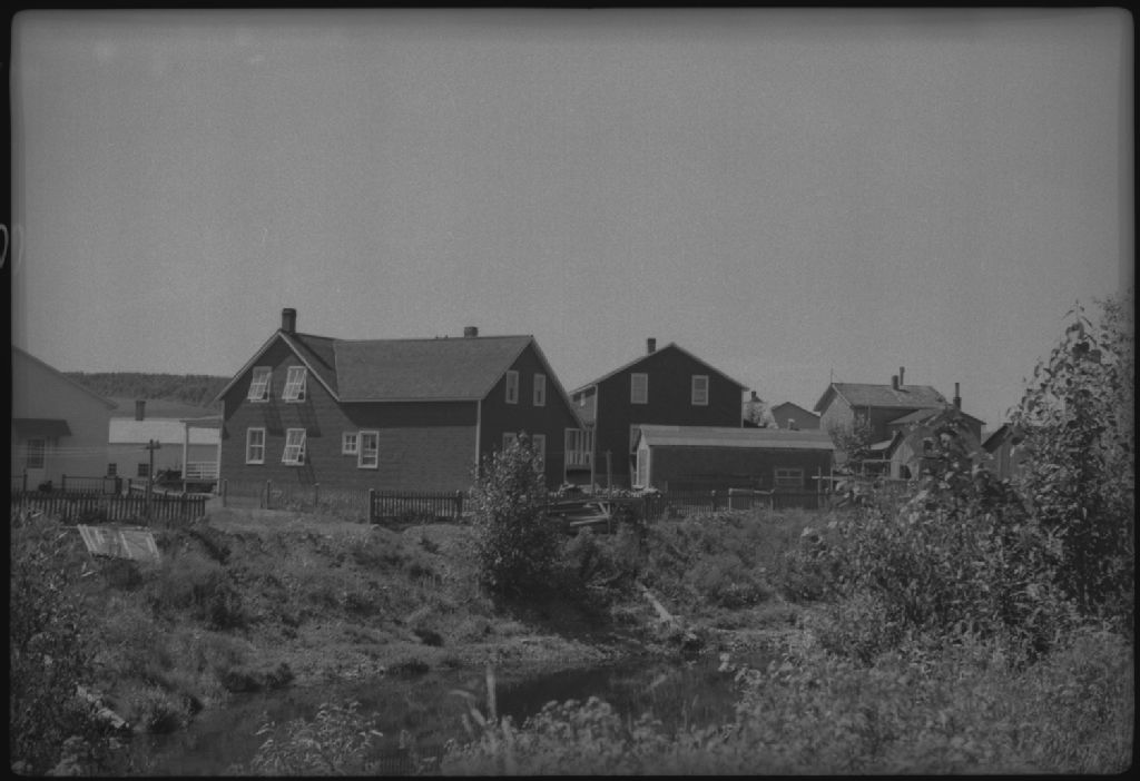 Vue sur la rive droite du pont du village sur la rivière Matapédia à Amqui. Comté de Matapédia