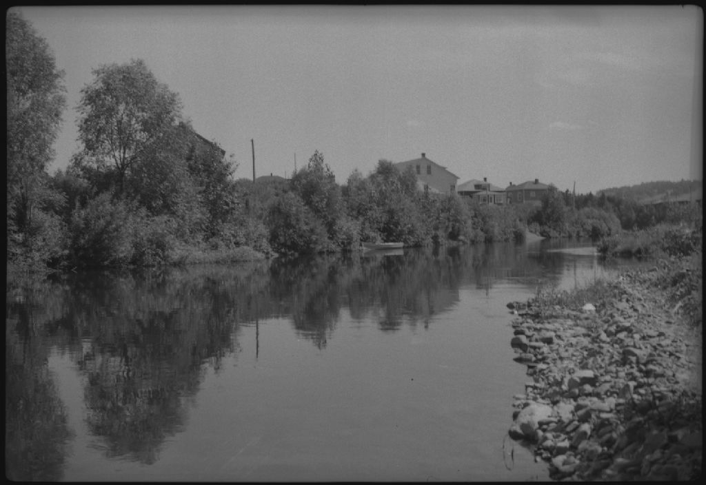 Vue en aval du pont du village sur la rivière Matapédia à Amqui. Comté de Matapédia