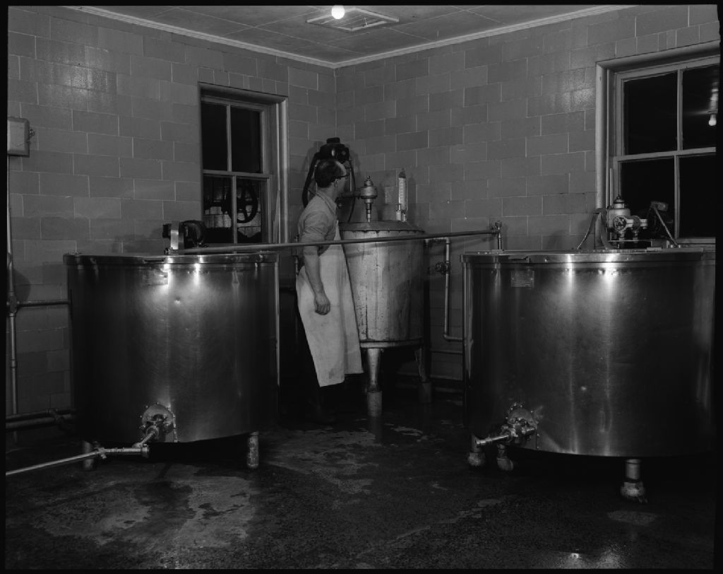 Pasteurisation du lait pour la fabrication du fromage camembert. Mackayville.