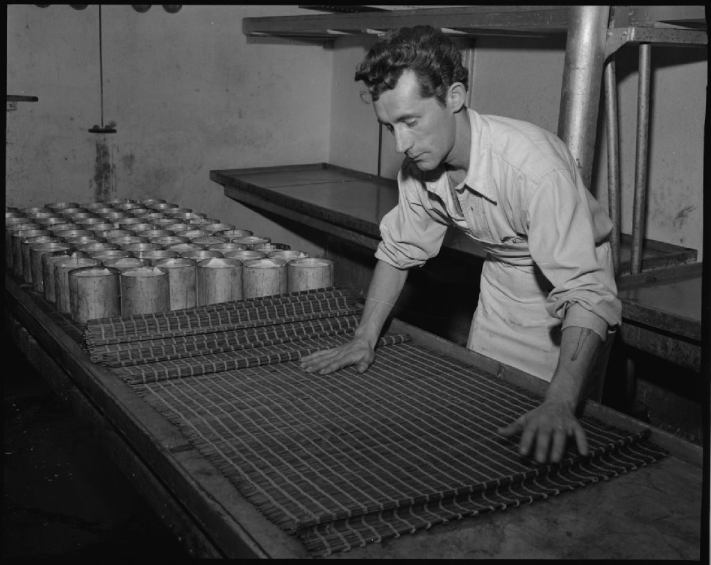 Égouttage du fromage à la fabrique Clément. Mackayville.