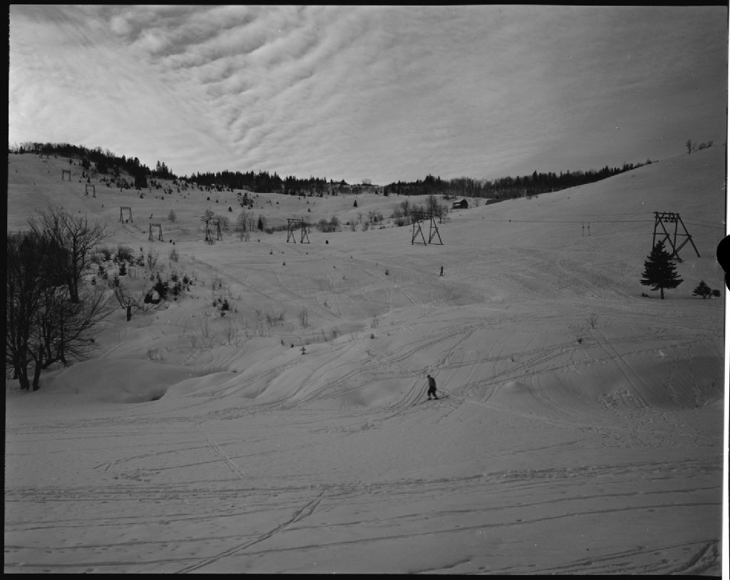 Pistes de ski. Saint-Gabriel-de-Valcartier, 1952, Archives nationales à Québec, Fonds Ministère de la Culture et des Communications, (03Q,E6,S7,SS1,D2,P90375), J.W.Michaud.