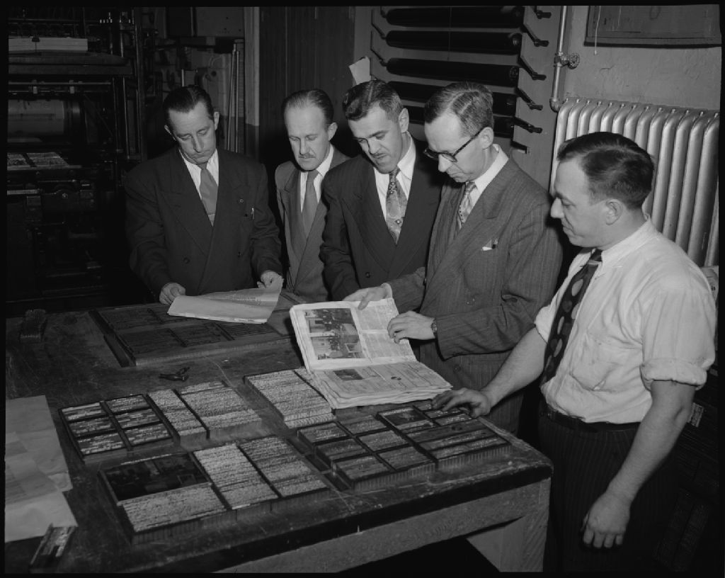Les officiers de l'A.E.C. visitent le département de l'assemblage, du brochage et de l'expédition à l'Imprimerie Provinciale