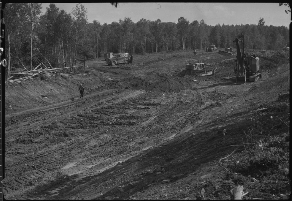 Construction, route numéro 2, chaînage 542-00, Saint-Honoré, comté de Témiscouata, 1952, Archives nationales à Québec, Fonds Ministère de la Culture et des Communications, (03Q,E6,S7,SS1,D2,P90575), Jean Bastien.