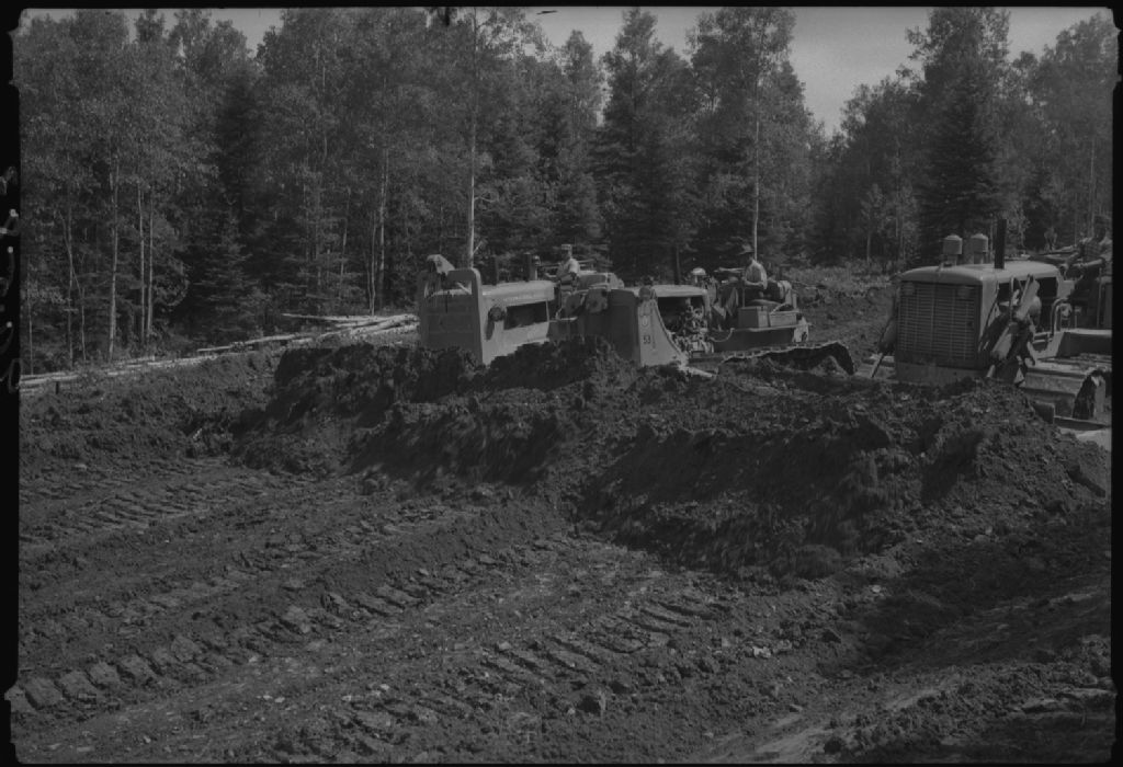 Construction, route numéro 2, chaînage 545-00, Saint-Honoré, comté de Témiscouata, 1952, Archives nationales à Québec, Fonds Ministère de la Culture et des Communications, (03Q,E6,S7,SS1,D2,P90583), Jean Bastien.