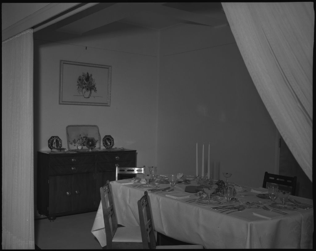 Vue de la salle à manger du foyer modèle de l'école ménagère. Cap-de-la-Madeleine.