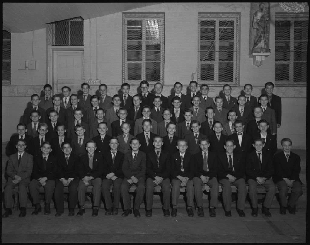 La maîtrise lors des fêtes du jubilé d'argent de l'institut Saint-Jean Bosco, 1952, Archives nationales à Québec, Fonds Ministère de la Culture et des Communications, (03Q,E6,S7,SS1,D2,P90854), Neuville Bazin.