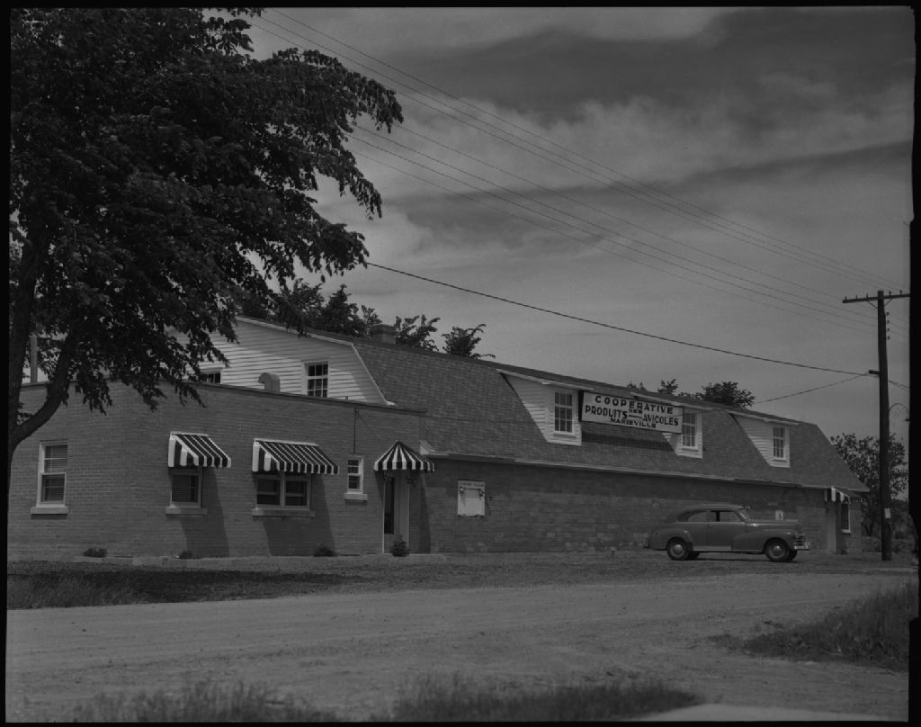 Vue extérieure de la coopérative avicole. Marieville, comté Rouville.