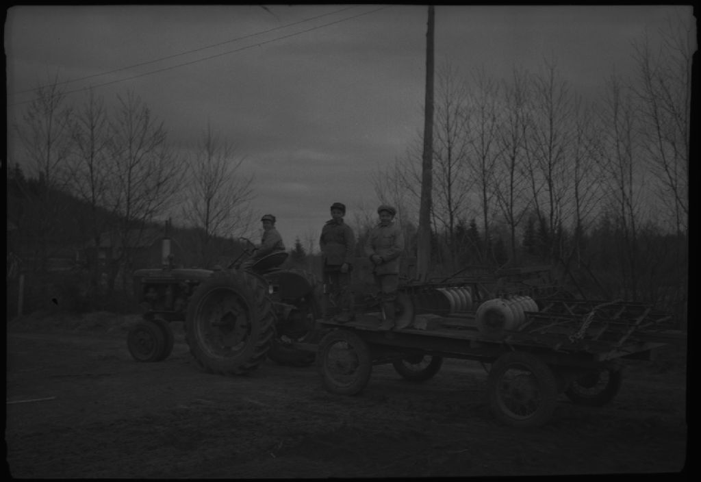 Trois jeunes fils de cultivateur viennent de disquer et de herser le terrain de la pépinière de Duchesnay, comté de Portneuf, 1952, Archives nationales à Québec, Fonds Ministère de la Culture et des Communications, (03Q,E6,S7,SS1,D2,P91287), Roch Delisle.