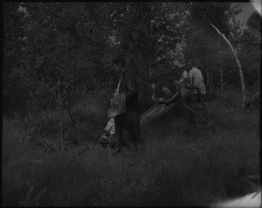 Albert Rousseau, artiste peintre et ses enfants à Saint-Étienne-de-Lauzon, 1952, Archives nationales à Québec, Fonds Ministère de la Culture et des Communications, (03Q,E6,S7,SS1,D2,P91770), Paul Carpentier.
