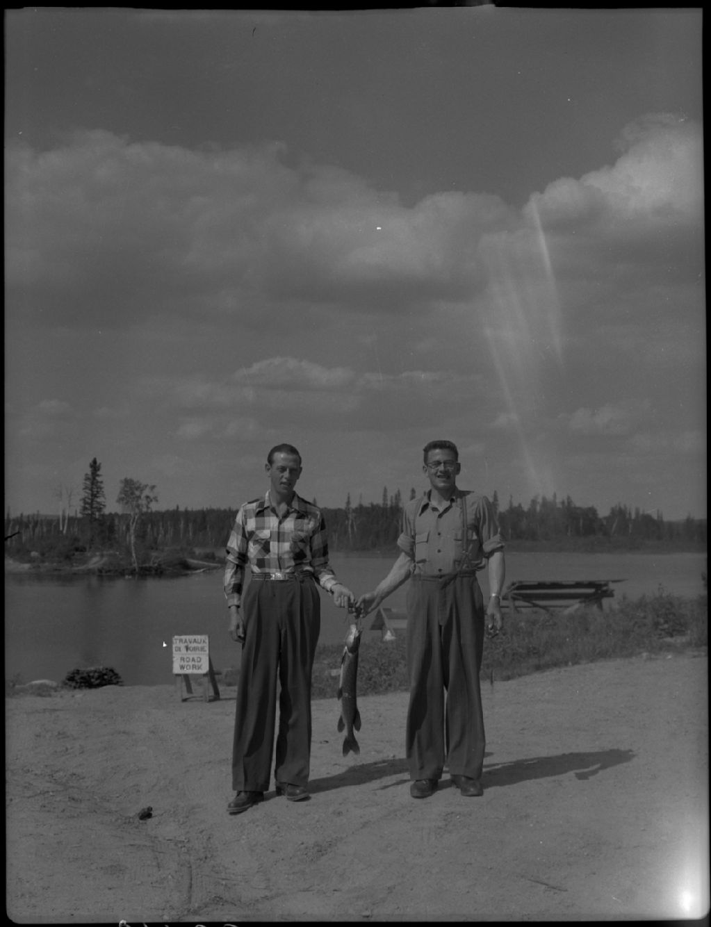 Deux garde-feux de la Ottawa River Forest Protective, revenant de la pêche après le souper. Rivière Ottawa