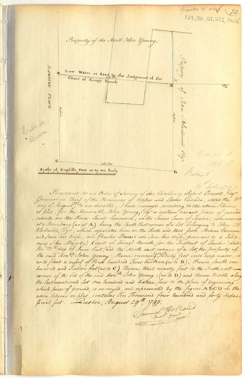 Plan d'un lot en eaux profondes concédé à John Young, situé en la basse ville de Québec voisin du Landing Place