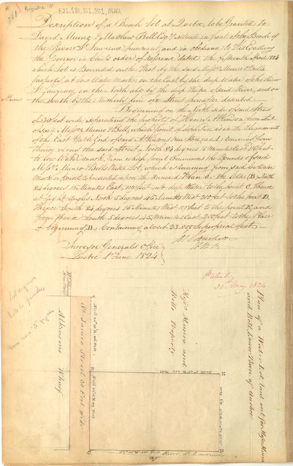 Plan of a water lot laid out for Mef. Munro and Bell, in the Lower Town of Quebec