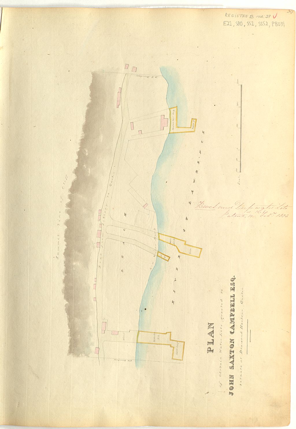 Plan of certain water lots in Champlain granted to John Saxton Campbell esquire situate at Diamond Harbour, Quebec.
