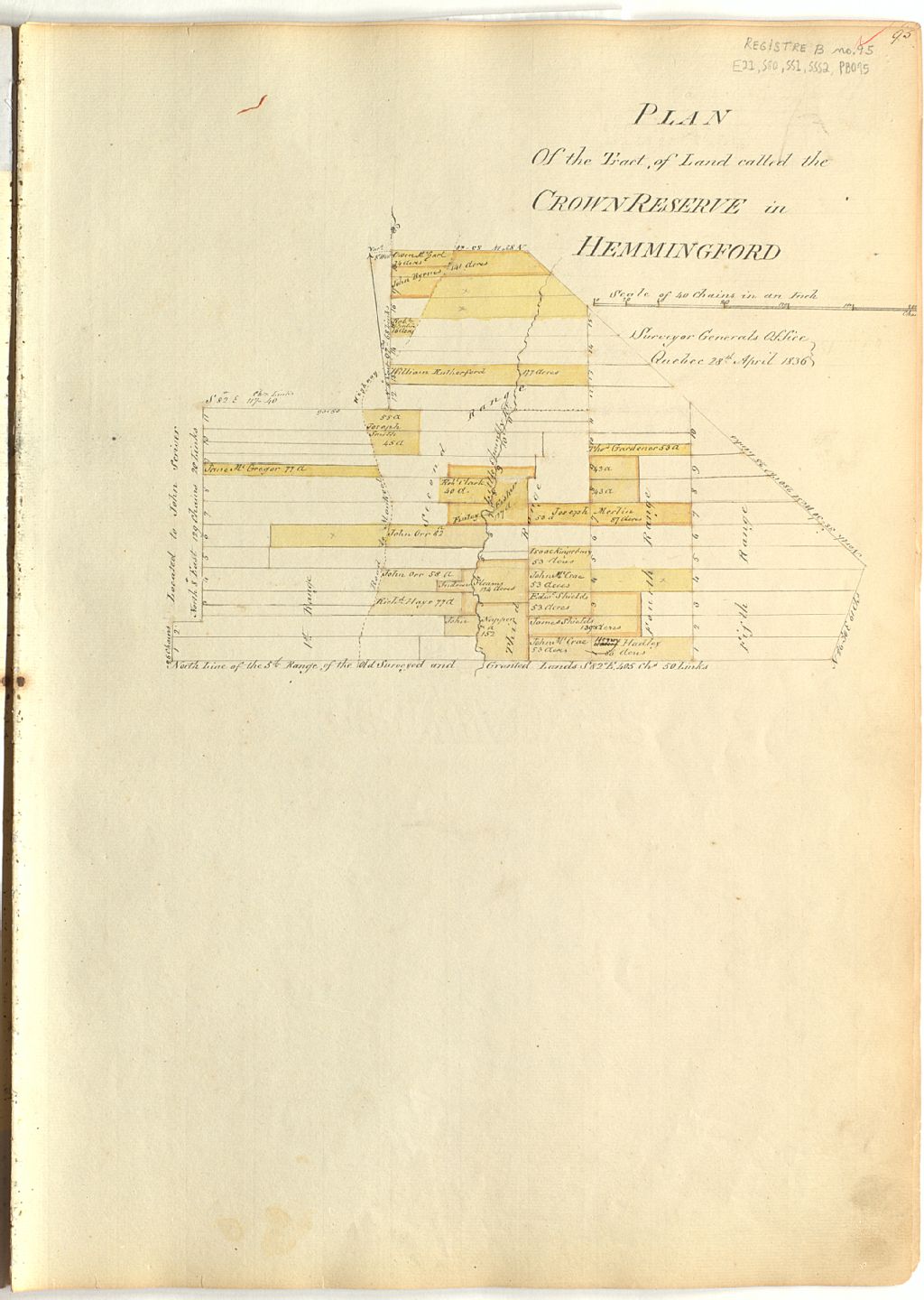 Plan of the tract of land called the Crown Reserve in Hemmingford