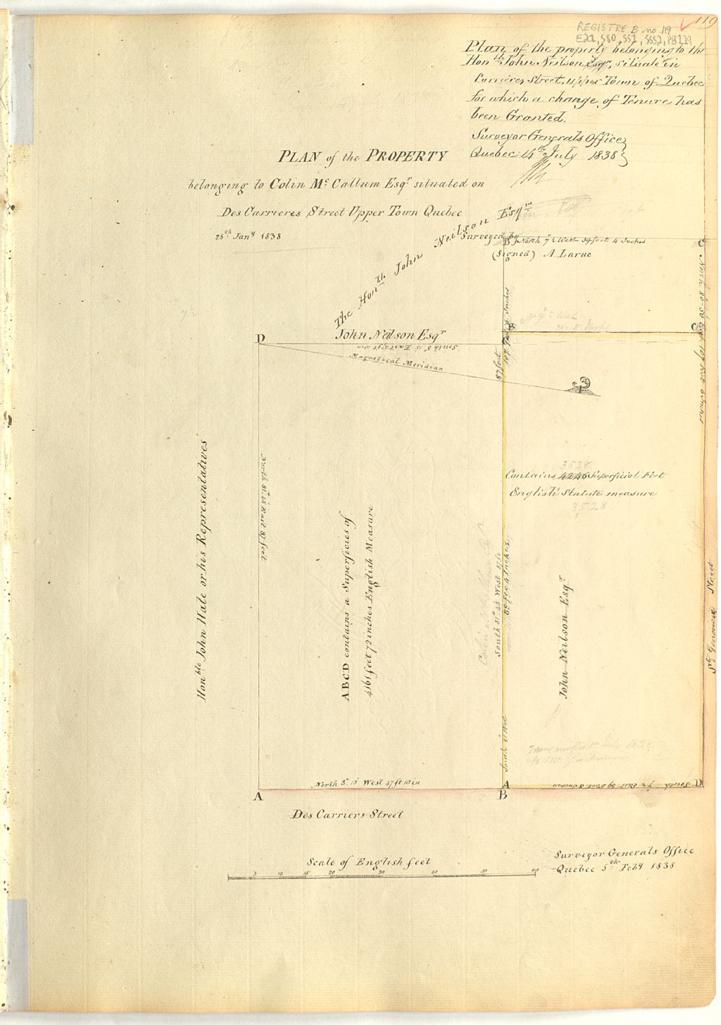 Plan of the property belonging to Colin McCallum Esq. situated on Des Carrières street, Upper Town of Quebec