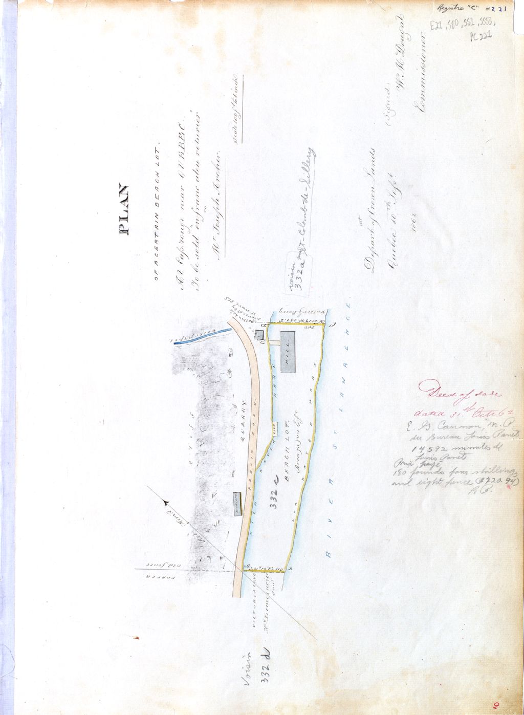Plan of a certain beach lot at Sillery near Quebec to be sold en franc-alleu roturier to Mr. Joseph Archer