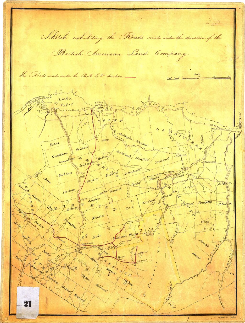 Sketch exhibiting the roads made under the direction of the British American Land Company.