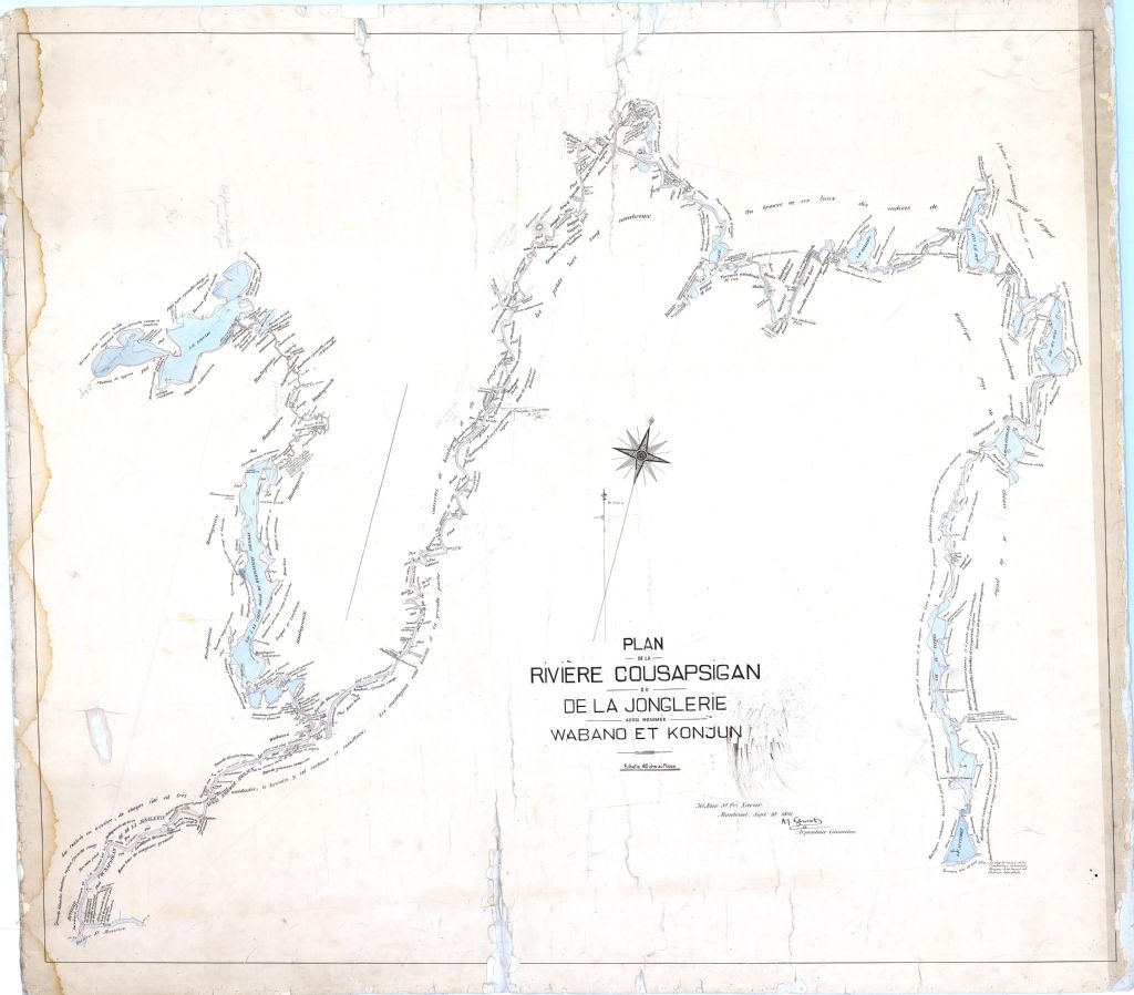 Rivière Cousapsigan ou de la Jonglerie aussi nommé Wabano et Konjun. Dans les cantons de Baillargé, Meilleur, Lafitau, Labruère, Faguy, Levasseur, Routhier et Laflamme.