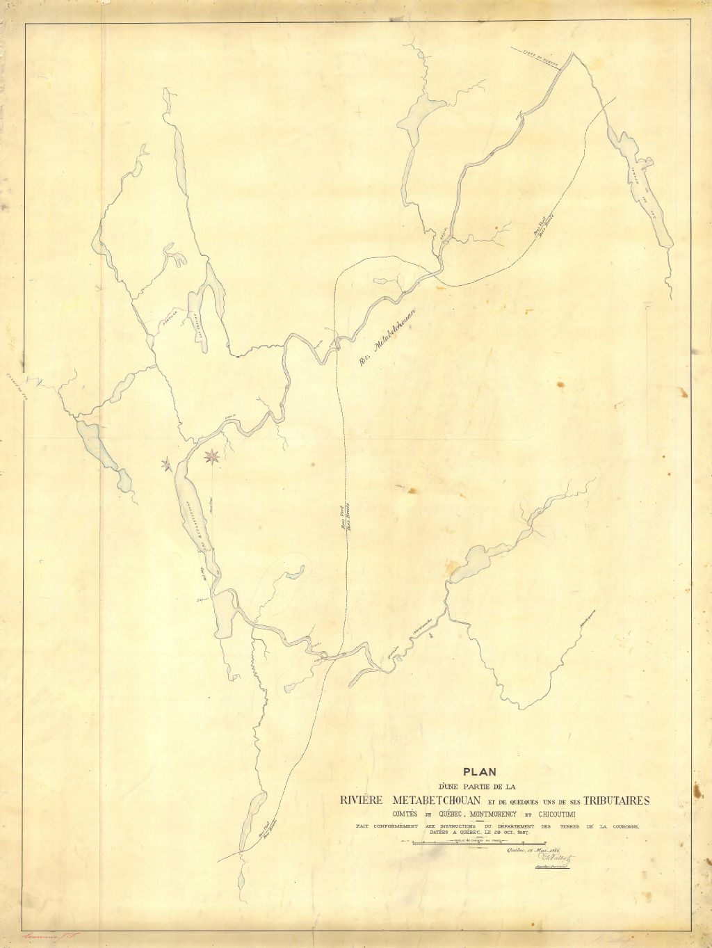 Plan d''une partie de la rivière Métabetchouan et de quelques uns de ses tributaires. Comtés de Québec, Montmorency et Chicoutimi.
