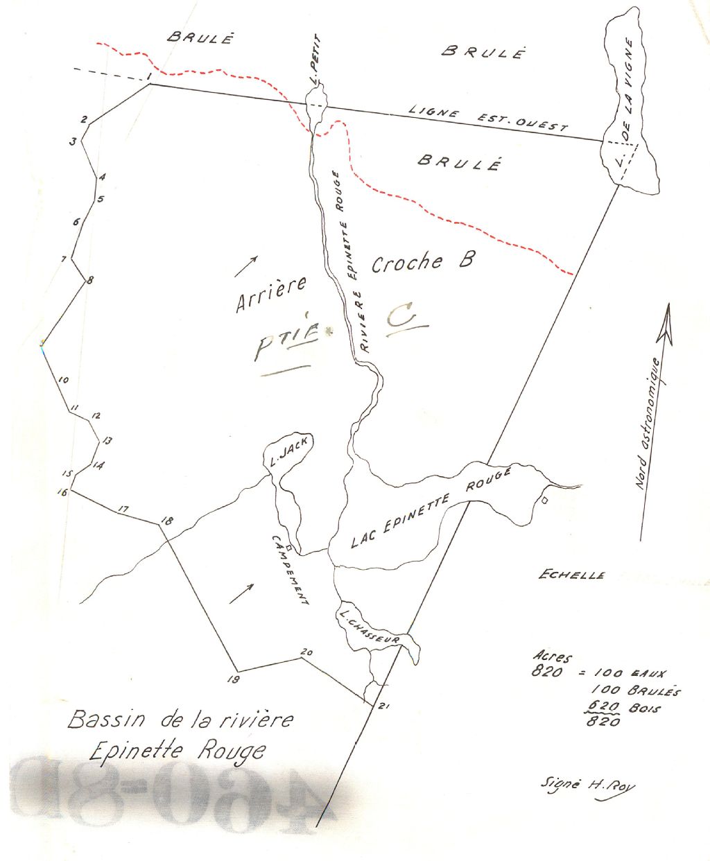 Bassin rivière Épinette, rang E. L'original de ce plan est filé avec le transfert no 93 "St-Maurice". Limites arrière branche B, partie C.