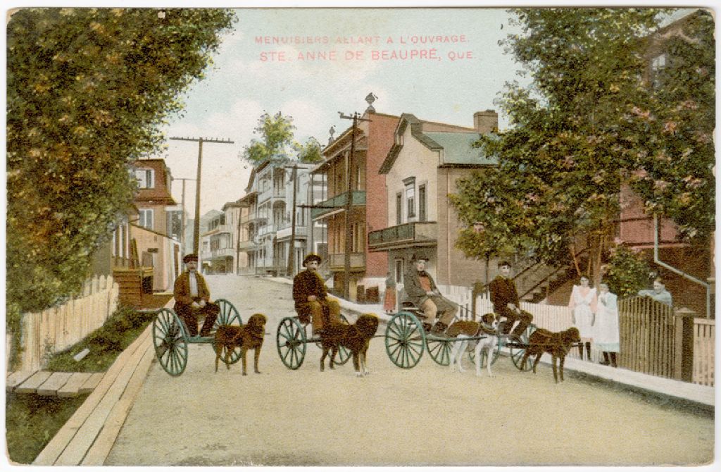 Menuisiers allant à l'ouvrage, Sainte-Anne de Beaupré, Québec, 8 septembre 1909, Archives nationales à Québec, Collection Florence Sylvain-Daigle, (03Q,P694,P16), Photographe non identifié.