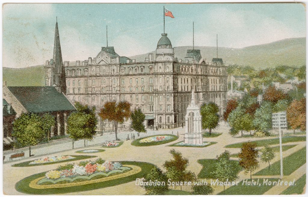 Dominion Square with Windsor Hotel, Montreal, 18 décembre 1907, Archives nationales à Québec, Collection Florence Sylvain-Daigle, (03Q,P694,P68), Photographe non identifié.