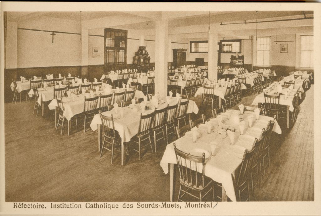 Réfectoire, Institution catholique des Sourds-Muets, Montréal, [vers 1900], Archives nationales à Québec, Collection Florence Sylvain-Daigle, (03Q,P694,P76), Photographe non identifié.