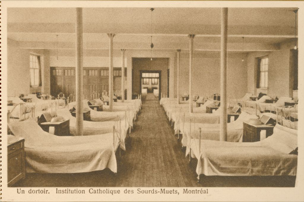 Un dortoir, Institution catholique des Sourds-Muets, Montréal, [vers 1900], Archives nationales à Québec, Collection Florence Sylvain-Daigle, (03Q,P694,P80), Photographe non identifié.