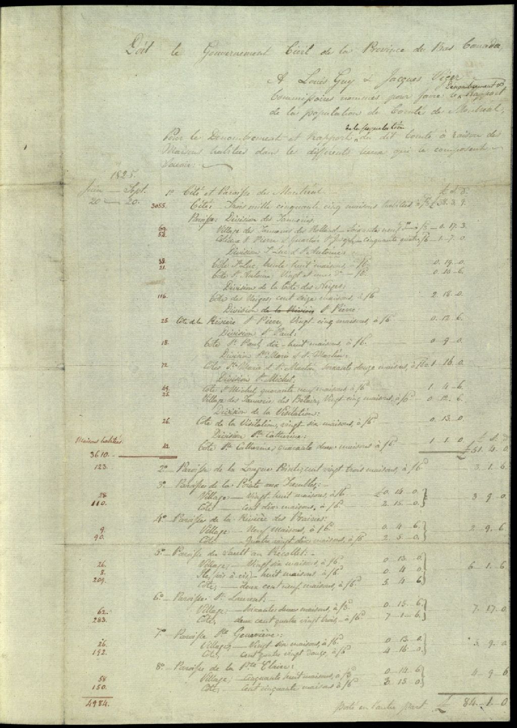 - Dénombrement du Comté de Montréal fait en 1825 par MM Louis Guy et Jacques Viger ...