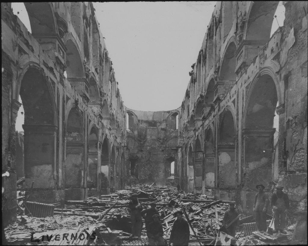 Ruines de la Basilique-cathédrale Notre-Dame-de-Québec suite à l'incendie, Décembre 1922, Archives nationales à Québec, Fonds J. E. Livernois Ltée, (03Q,P560,S2,D3,P116), J. E. Livernois Photo. Québec.
