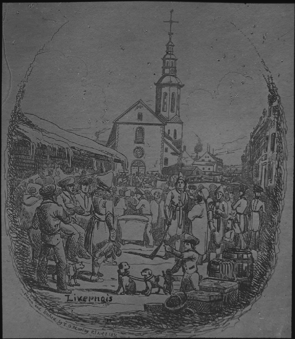 La Basilique en 1831, [Vers 1860-vers 1965], Archives nationales à Québec, Fonds J. E. Livernois Ltée, (03Q,P560,S2,D3,P42), J. E. Livernois Photo. Québec.