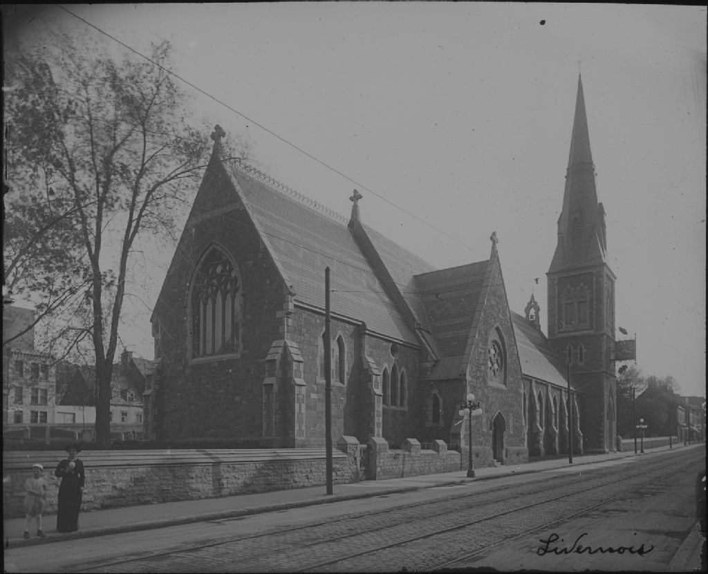 Église St-Mathieu, extérieur, [Vers 1860-vers 1965], Archives nationales à Québec, Fonds J. E. Livernois Ltée, (03Q,P560,S2,D3,P66), J. E. Livernois Photo. Québec.
